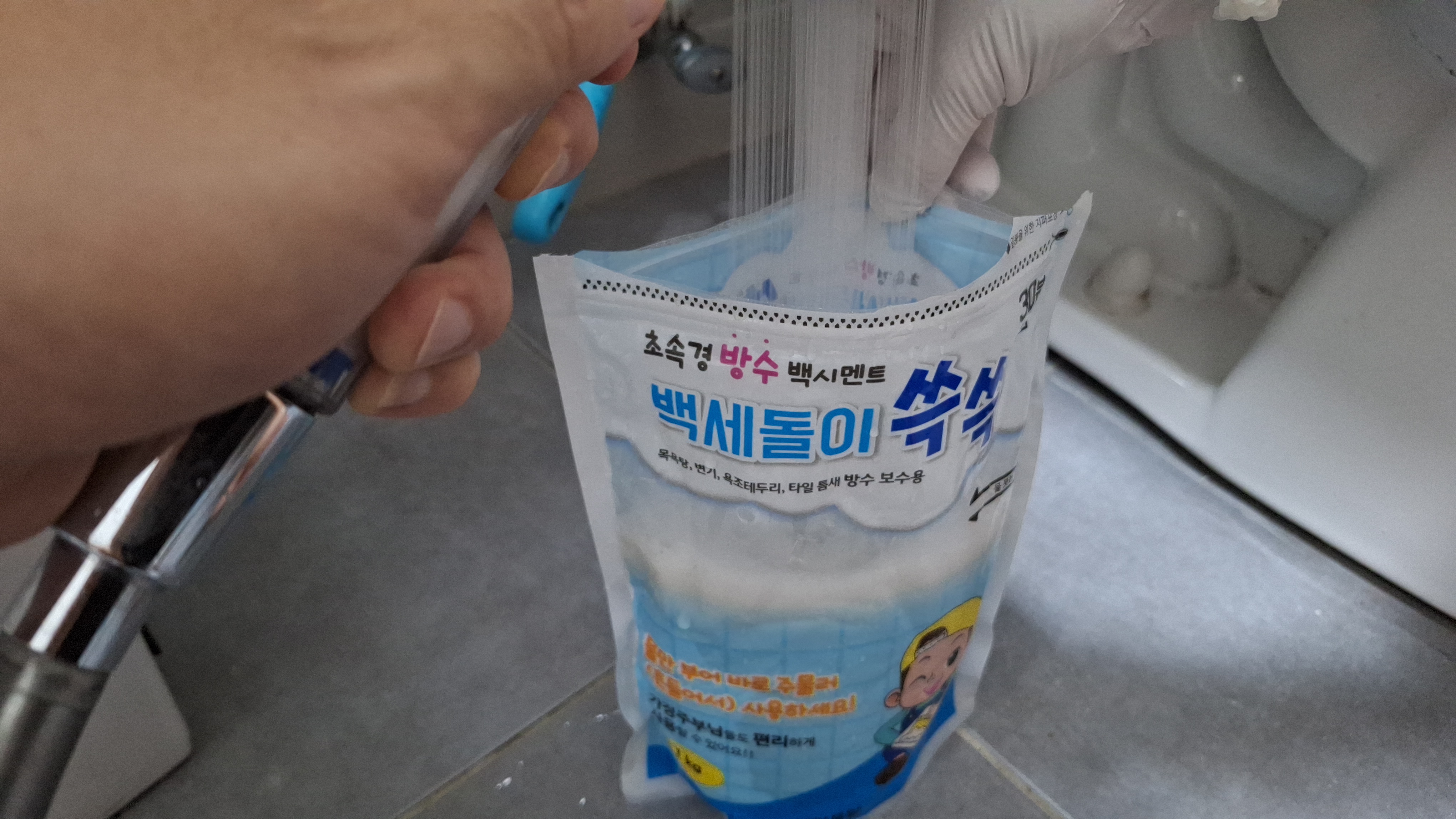 일단 빠르게 굳는 제품이라서 10분이내에 작업을 마치고
