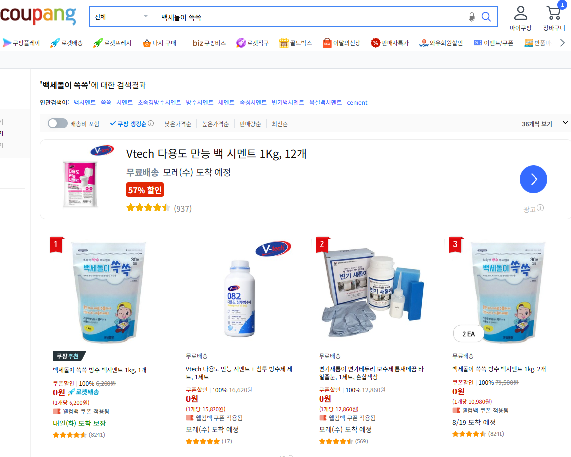 현재 별점 4.6점, 리뷰 8241개를 가진 백세돌이 쓱쓱 방수 백시멘트 1kg! 지금 쿠팡에서 더 저렴하고 다양한 시멘트 제품들을 확인해보세요.